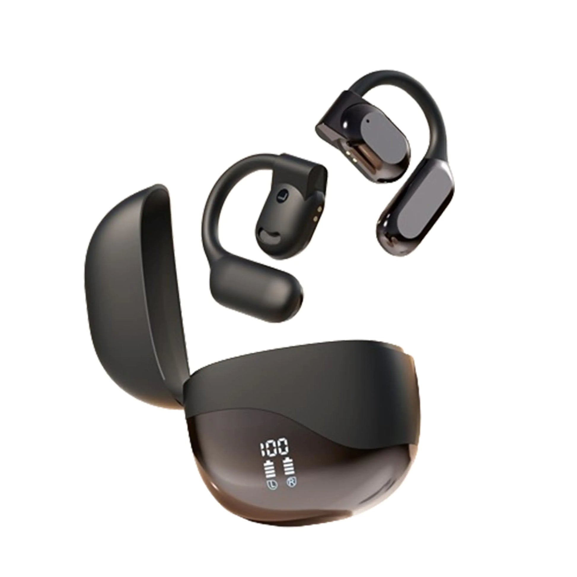 MAcnas Wireless Earbuds Open Ear Earhooks Headphones Air Conduction Headphones LED Power Display Earphones Sport Bluetooth 5.3 Headphones (Black)